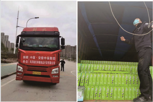2020年2月8日下午16时许,由中国•安信中保旗下凤冈陆氏锌硒食品集团捐赠的防疫物资3000箱经过连续多天的努力,终于顺利从遵义抵达湖北省武昌监狱指挥中心。这批防疫物资第一时间向一线民警发放,将为一线民警增强自身免疫力提高更好的保障,为应对新型冠状病毒肺炎疫情防控做出更多更好的贡献。